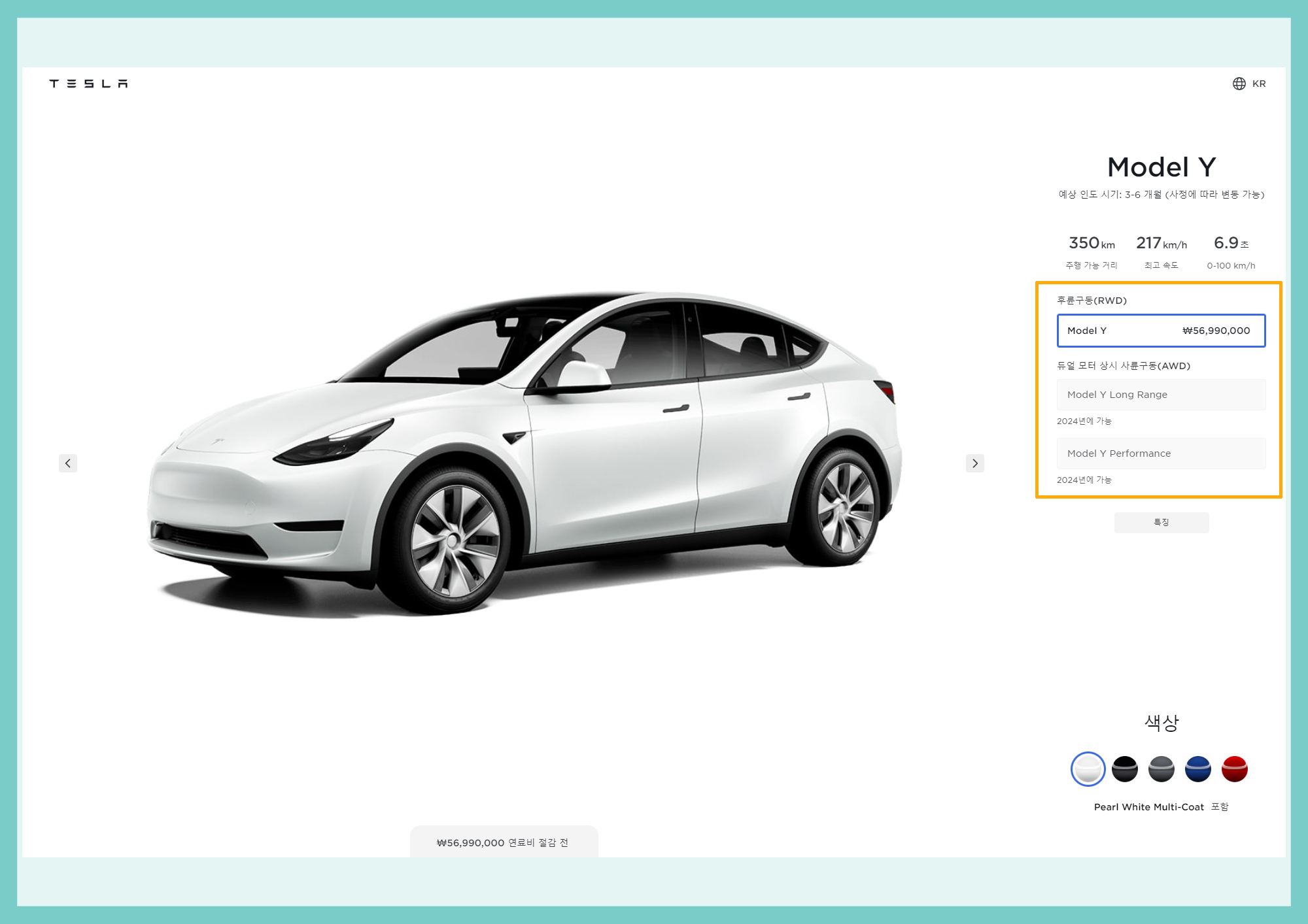 나는 전기차 중에서도 테슬라 모델 Y RWD를 구입하기로 하였다.